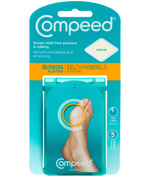 Compeed Bunion Medium Plasters are second-skin plasters for bunions that not only immediately relieve painful pressure but also avoid rubbing. With the Hydrocolloid Technology and the thick cushioning, it not only quickly relieves pain but also instantly relieves the pressure and rubbing that can aggravate the bunion. Protecting the skin and redistributing pressure it leads to a more comfortable walk and helps to prevent blisters and chafing, resulting in less hardened skin on the area. Specially designed to easily adapt to the feet contour for maximum comfort, the plaster is both breathable and waterproof and stays in place for several days flexing with movement.