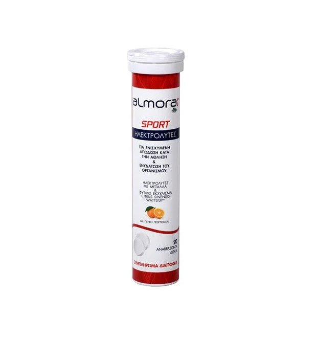 Almora Plus Sport is a dietary supplement in effervescent form with a combination of Electrolytes (Na, K, Cl), Calcium (Ca), Magnesium (Mg) and the plant extract Citrus sinensis.