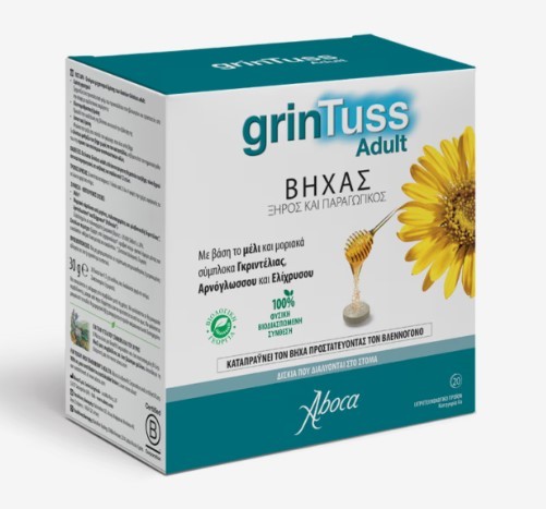 GrinTuss Adult tablets are indicated for the treatment of cough, both dry and productive, in adults and children from 12 years of age.