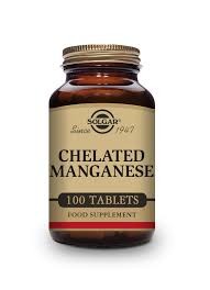 Solgar Chelated Manganese Tablets contain manganese in a dextrin, chelate, and easily absorbed form. Manganese is an essential nutrient that participates in many bodily functions, such as energy release from food for optimal metabolism, cell protection from oxidative stress caused by free radicals, and healthy bone formation.