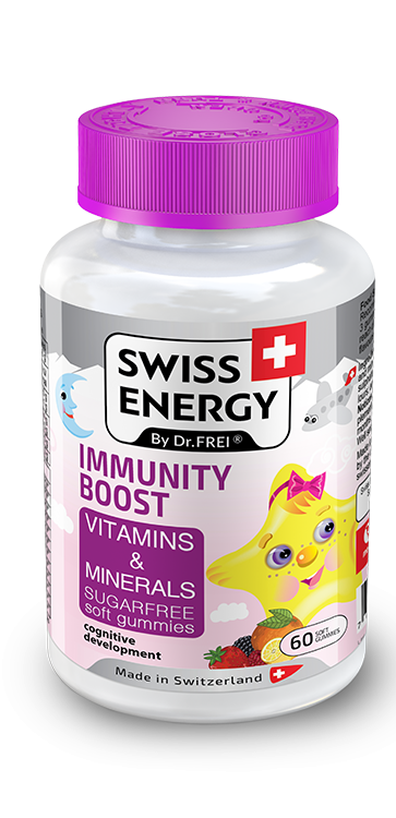 Great-tasting Immunity Boost multivitamin fruit gummies with zinc and iodine deliver nutritious key vitamins and essential min- erals for healthy growth, proper development and a stronger immune system. For children ages 3 and up. Children need a lot of energy every day in order to grow and learn. Immu- nity Boost helps their bodies and minds respond successfully to these challenges and gives them extra reserves. For greater vitality and health.